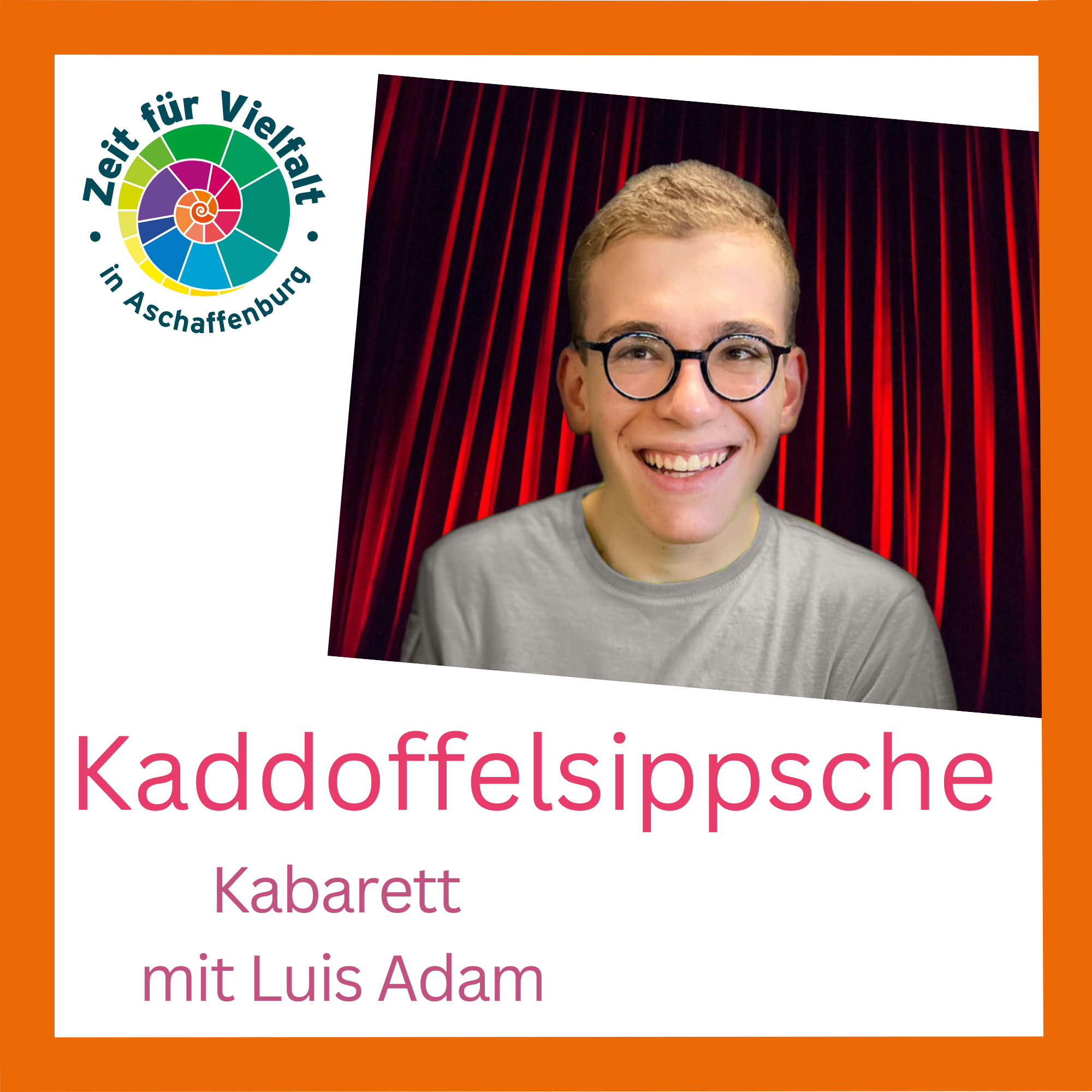 Wenn man Luis Adam fragt, wo er herkommt, dann muss er ganz weit ausholen: Zwar lebt der gebürtige Hesse in Bayern, doch das zählt nicht, denn schon 100 Meter weiter steht er auf hessischem Boden. Daher ist er zweifellos ein waschechter Hesse und babbelt, wie ihm „die bambelisch Schnuud gewachse is“. Aber auch andere Dialekte packt er in seinem Programm „Kaddoffelsippsche“ aus: Welche Parallelen gibt es vom Hessischen zum Schwäbischen? Wie verhalten sich Kölner gegenüber Frankfurtern? Und wie ergeht es einem Behinderten an der Front? All das – und noch viel mehr – verarbeitet er in einem Feuerwerk aus humorvollen Gedichten, Musikparodien sowie eigenen Songs. Aufgrund seiner Gehbehinderung lässt sich diese knallbunte Mischung wohl treffend als „Sit-down-Comedy“ zusammenfassen.
